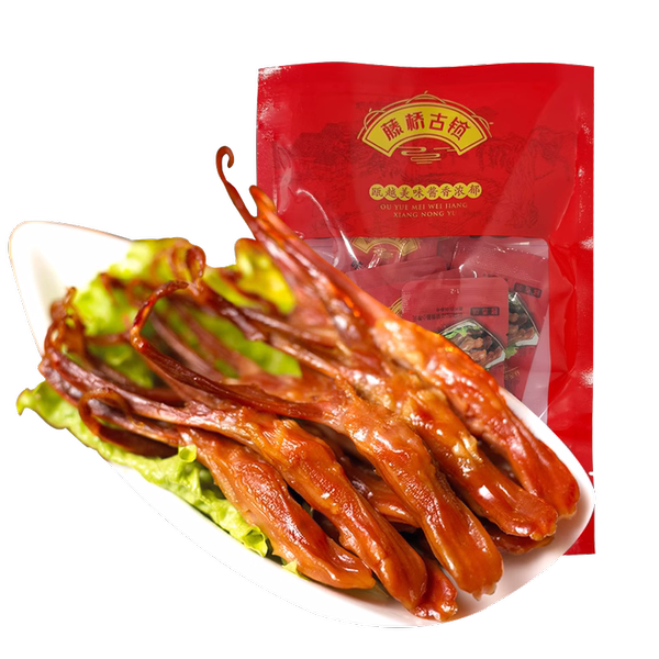 舌尖上的美味!藤桥温州特产,分量十足,都是大个的,高蛋白,有营养,酱香四溢,紧实肥美耐嚼,一根鸭舌,多重口感,劲道弹韧啃着香~