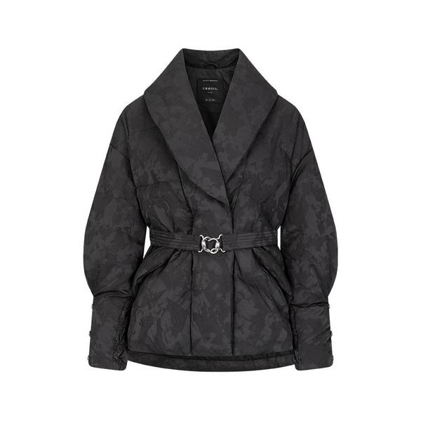 艾莱依鹅绒羽绒服女新款重工提花加厚保暖翻领西装领收腰优雅外套