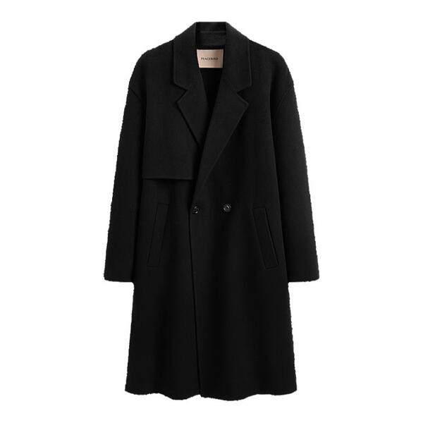 太平鸟男装 黑色休闲冬季翻领羊毛呢大衣男中长款平驳领外套