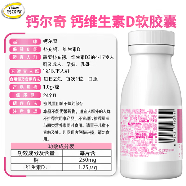 钙尔奇液体钙维生素d3软胶囊中老年孕妇补钙片官方正品