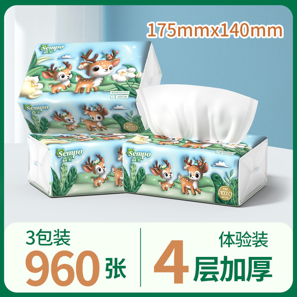 秒杀!森宝新品小鹿抽纸4层抽纸3大包